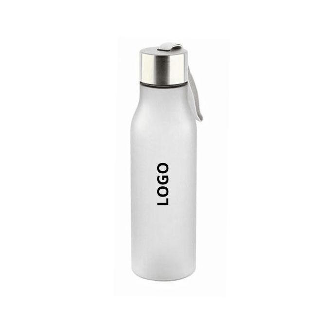 Botella esmerilada tranparente blanca de plastico con tapa de acero 600ml