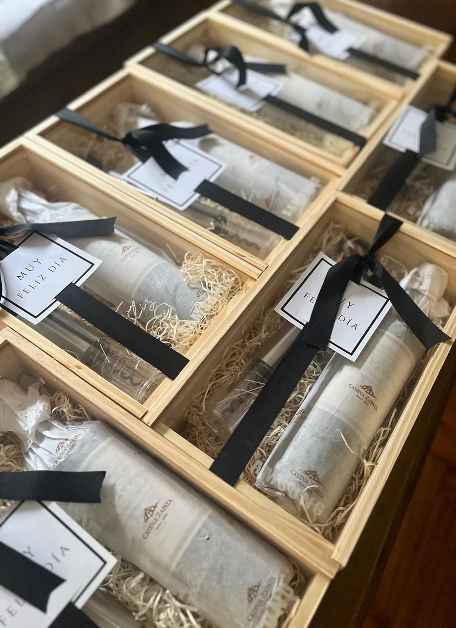 Presentación en caja de madera con tapa de acrilico grabada en laser